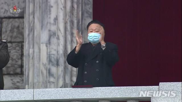 [서울=뉴시스]조선중앙TV가 17일 북한 평양 김일성광장에서 노동당 제8차대회 결정을 철저히 관철하기 위한 평양시군민연합대회를 개최했다고 보도했다. 사진은 최룡해 최고인민회의 상임위원회 위원장이 박수를 치는 모습. (사진=조선중앙TV 캡쳐) 2020.11.17. photo@newsis.com