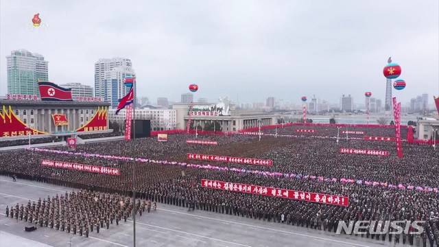 [서울=뉴시스]조선중앙TV가 17일 북한 평양 김일성광장에서 노동당 제8차대회 결정을 철저히 관철하기 위한 평양시군민연합대회를 개최했다고 보도했다. 사진은 연합대회에 참가한 대규모 군중 모습. (사진=조선중앙TV 캡쳐) 2020.11.17. photo@newsis.com
