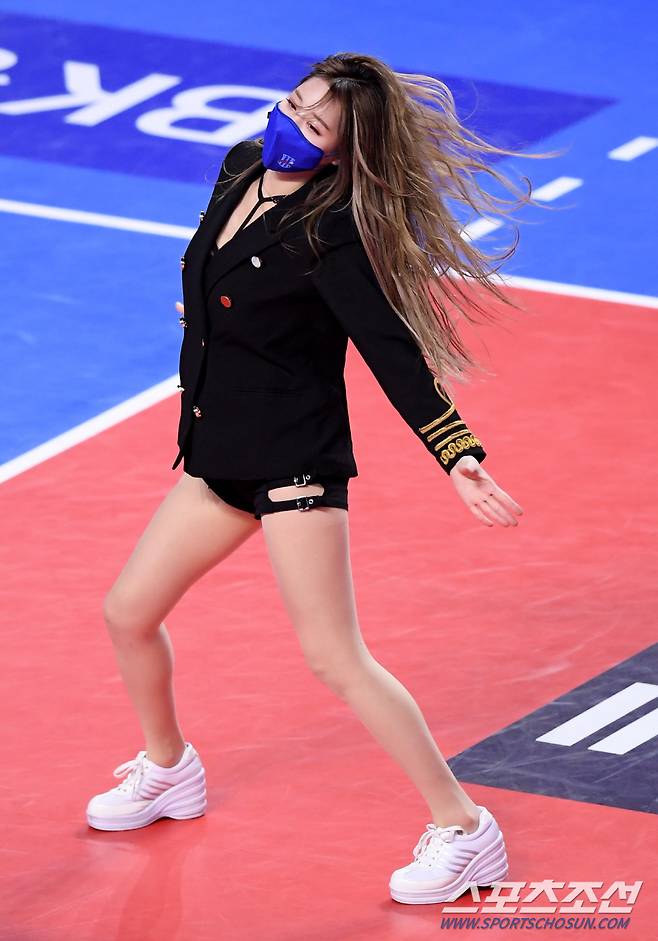 프로배구 여자부 IBK기업은행과 흥국생명의 경기가 17일 화성종합경기타운 실내체육관에서 열렸다. IBK기업은행 치어리더가 흥겨운 댄스로 시선을 사로잡고 있다. 화성=허상욱 기자 wook@sportschosun.com/2021.01.17/