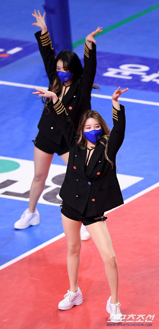 프로배구 여자부 IBK기업은행과 흥국생명의 경기가 17일 화성종합경기타운 실내체육관에서 열렸다. IBK기업은행 치어리더가 흥겨운 댄스로 시선을 사로잡고 있다. 화성=허상욱 기자 wook@sportschosun.com/2021.01.17/