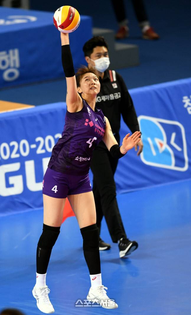 흥국생명 이주아가 17일 화성실내체육관에서 열린 2020-2021 V리그 여자부 IBK기업은행과 흥국생명의 경기에서 서브를 넣고 있다.