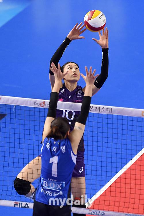 [마이데일리 = 화성 유진형 기자] 흥국생명 김연경이 17일 오후 경기도 화성종합경기타운 실내체육관에서 진행된 '2020-2021 V리그' 여자부, IBK기업은행과 흥국생명의 경기에서 공을 넘기고 있다.