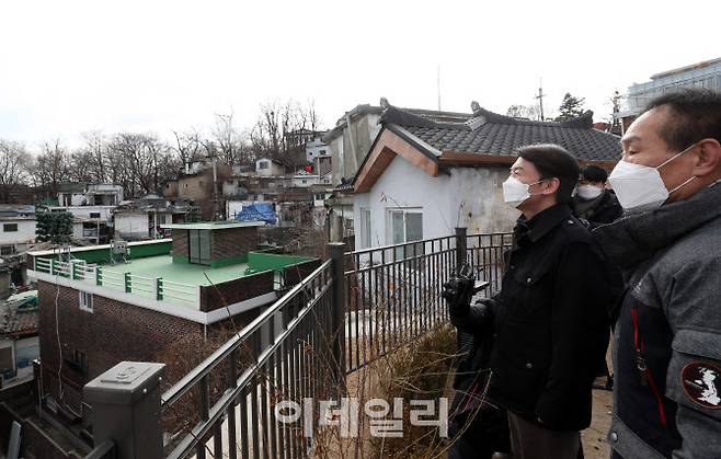 [이데일리 노진환 기자] 서울시장 출마를 선언한 안철수 국민의당 대표가 17일 오후 서울 종로구 사직 제2구역를 찾아 도시재개발이 시급한 서울시민의 주거현장을 점검하고 있다. 국회사진취재단