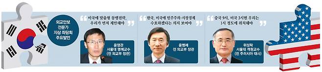 매일경제 '외교안보전문가 특별좌담회'에 서면으로 참석한 윤영관 서울대 명예교수(전 외교통상부 장관)·윤병세 전 외교부 장관·위성락 서울대 객원교수(전 한반도평화교섭본부장·주러시아 대사)는 이러한 변화에 맞춰 트럼프 시대에 통했던 우리 외교안보 전략을 수정하고 선제적으로 대응해야한다고 역설했다.