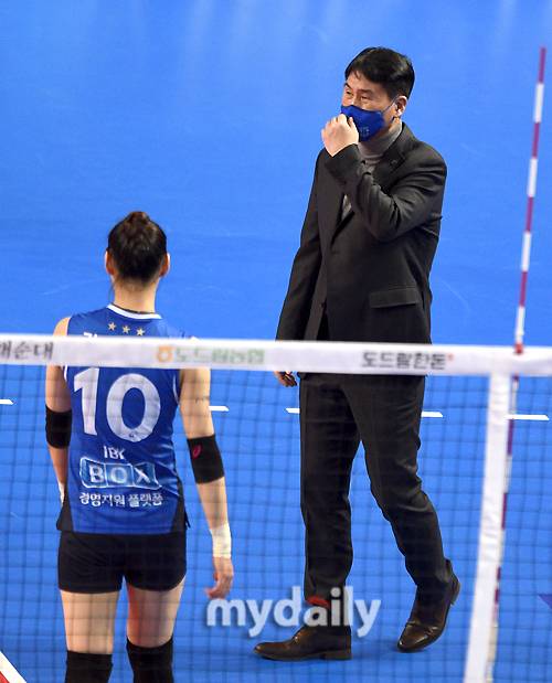 [마이데일리 = 화성 유진형 기자] IBK기업은행 라자레바가 17일 오후 경기도 화성종합경기타운 실내체육관에서 진행된 '2020-2021 V리그' 여자부, IBK기업은행과 흥국생명의 경기에서 아쉬워하고 있다.