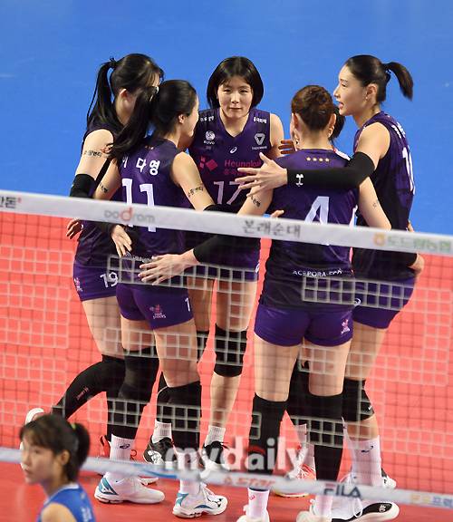 [흥국생명이 17일 오후 경기도 화성종합경기타운 실내체육관에서 진행된 '2020-2021 V리그' 여자부, IBK기업은행과 흥국생명의 경기에서 기뻐하고 있다. 사진 = 화성 유진형 기자 zolong@mydaily.co.kr]- ⓒ마이데일리(www.mydaily.co.kr). 무단전재&재배포 금지 -