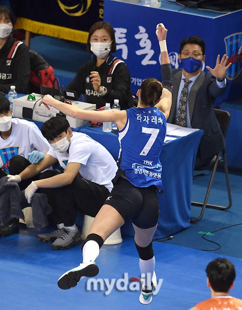 [마이데일리 = 화성 유진형 기자] IBK기업은행 라자레바가 17일 오후 경기도 화성종합경기타운 실내체육관에서 진행된 '2020-2021 V리그' 여자부, IBK기업은행과 흥국생명의 경기에서 수비하고 있다.