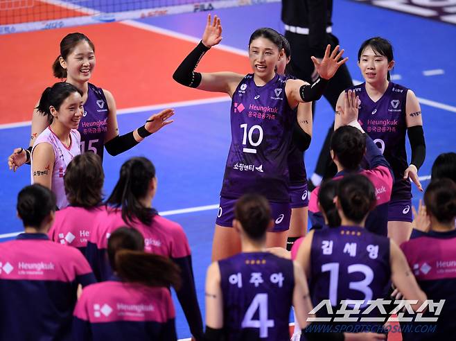 프로배구 여자부 IBK기업은행과 흥국생명의 경기가 17일 화성종합경기타운 실내체육관에서 열렸다. 흥국생명이 3대0으로 승리했다. 경기 종료 후 기쁨을 나누는 흥국생명 선수들의 모습. 화성=허상욱 기자 wook@sportschosun.com/2021.01.17/