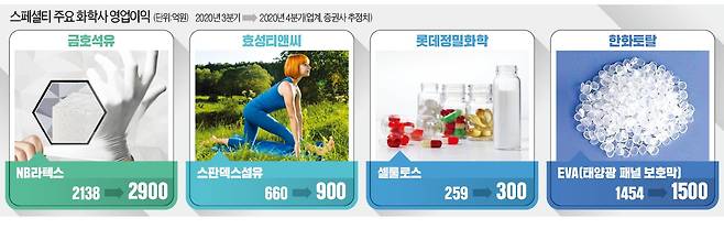 ‘스페셜티 제품’에 특화된 국내 화학회사의 이익 규모가 눈덩이처럼 불어나고 있다. 스페셜티는 특정 영역에 한정적으로 쓰이는 기능이 들어간 화학제품을 뜻한다. 생활 속 광범위하게 쓰이는 기초화학 제품과 구분된다. NB라텍스가 대표적인 스페셜티 제품이다.