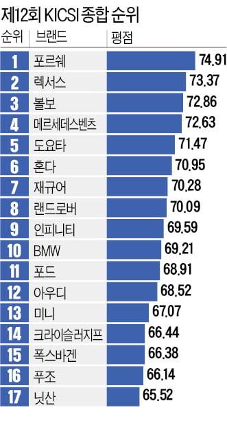 종합평점 74.91 받은 포르쉐