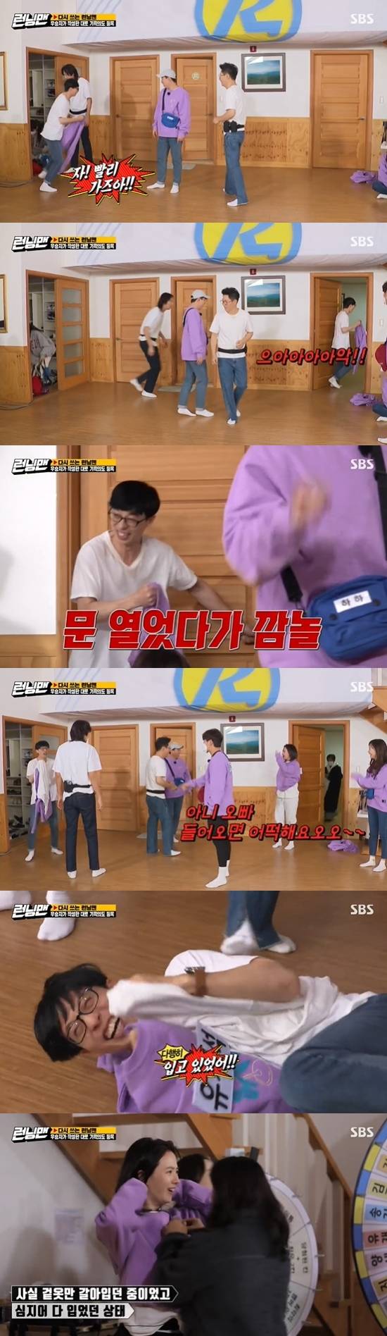 '런닝맨' 유재석이 송지효가 있는 방인 줄 모르고 들어갔다가 깜짝 놀랐다.