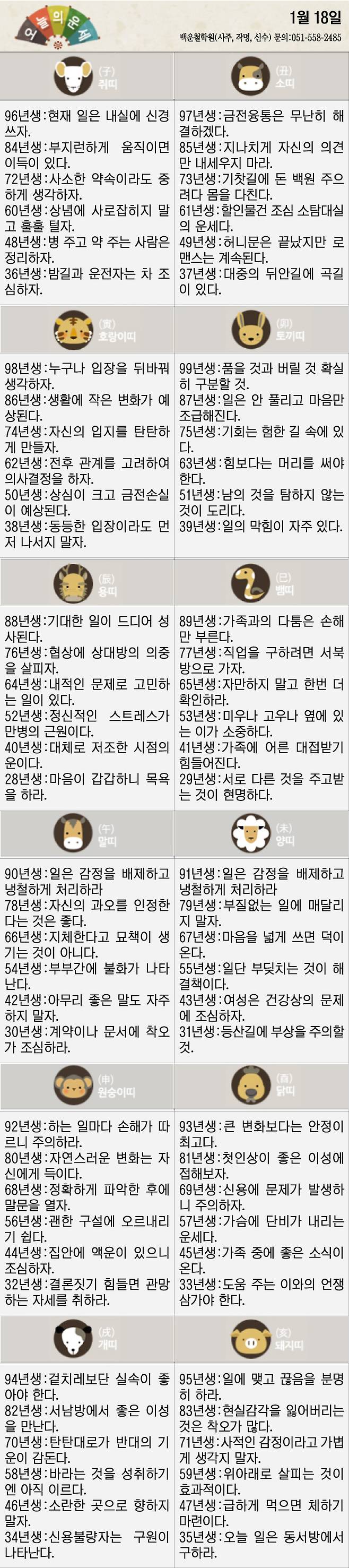 [재미로 보는 오늘의 운세] 1월 18일 (월요일)