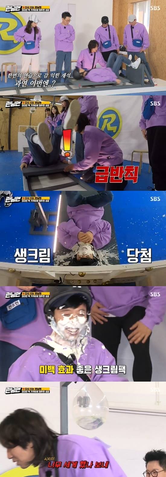 김종국이 "제가 먼저 하겠다"라고 나서자 멤버들은 "역시 김대상"이라고 했고, 지석진은 "대상 받더니 모범을 보이네"라고 밝혔다. 구슬 벌칙이 생각보다 약한 걸 본 유재석은 다음 순서에 하겠다고 나섰다. 하지만 이광수가 카트를 세게 밀었고, 유재석은 벽에 부딪쳐 생크림 벌칙을 받았다. 이광수는 "너무 세게 했나 보네. 정도껏 세게 해야 하는데"라며 시치미를 뗐다. 유재석은 "중간에 누가 차지 않았냐"라며 의심했다. 멤버들은 이젠 반칙을 금지하기로 했다. 유재석은 멤버들마다 돌아다니며 반칙은 없었는지 확인했지만, 김종국마저 "형이 세게 밀었다"라고 밝혔다.