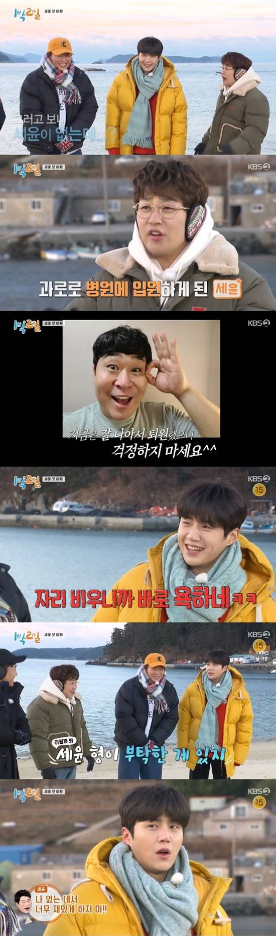 17일 방송된 KBS 2TV '1박 2일 시즌4'에서는 문세윤이 과로로 병원에 입원해 촬영에 불참한 사실이 전해졌다.