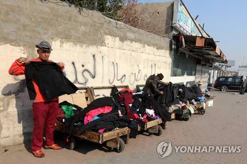 epa08943203 Iraqi street vendors display used clothes for sale at a street in central Baghdad, Iraq on 17 January 2021. Scores of shops and street vendors are selling used cloth?es at low prices for the poor and low-income people in Baghdad, amid an economic crisis in the country, following the decision of the Iraqi government to devalue the Iraqi dinar against the US dollar, which caused increase of goods prices in the Iraqi markets. EPA/AHMED JALIL