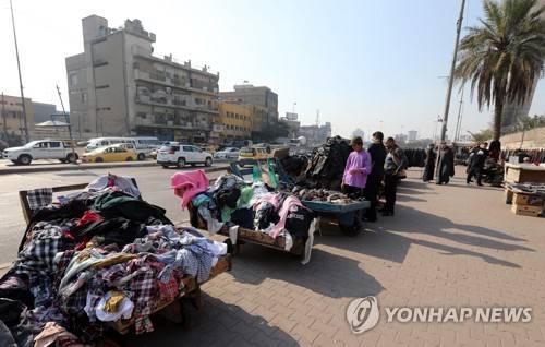epa08943206 Iraqi street vendors display used clothes for sale at a street in central Baghdad, Iraq on 17 January 2021. Scores of shops and street vendors are selling used cloth?es at low prices for the poor and low-income people in Baghdad, amid an economic crisis in the country, following the decision of the Iraqi government to devalue the Iraqi dinar against the US dollar, which caused increase of goods prices in the Iraqi markets. EPA/AHMED JALIL