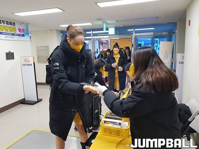 KB스타즈는 경호 업체와 협력해 경기장 외부부터 출입 인원을 통제했다. 관계자 외에는 경기장 근처에 접근할 수 없도록 조치한 것. 청주체육관에 밀접한 주차 시설이 부족한 이유도 있었지만, 혹시 모를 코로나19 확산 사태에 대비해 인원 통제에 심혈을 기울였다.