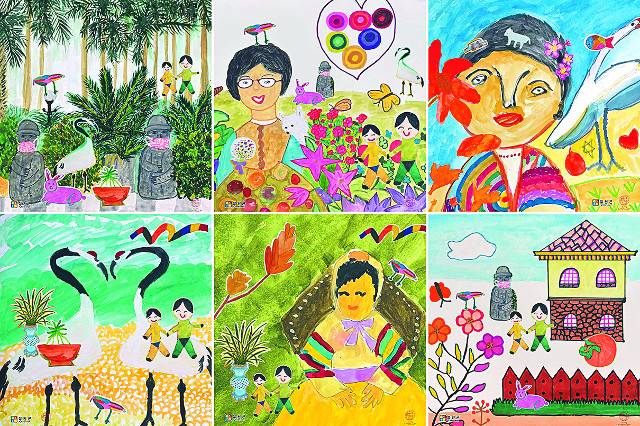 경기 파주시 헤이리갤러리움에서 열리는 '화지마을 이야기꽃' 전시회에 출품된 강원도 철원군 화지리 화지마을 할머니들의 그림들. 이 전시회는 20~31일 열린다.