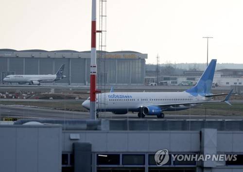 epa08943465 A Pobeda airlines plane, in which Russian opposition leader Alexei Navalny and his wife Yulia Navalnaya are to fly to Moscow, arrives at the Berlin Brandenburg International Airport BER in Schoenefeld, Germany, 17 January 2021. Navalny plans to return to Russia on a scheduled flight to Moscow later in the afternoon on 17 January. He was treated at the Charite hospital in Berlin since 22 August 2020 for being poisoned with a nerve agent from the Novichok group and was discharged from acute inpatient care on 22 September 2020. EPA/HAYOUNG JEON