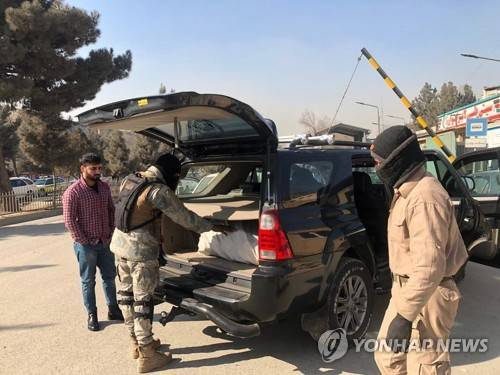 epa08943578 Afghan security officials check vehicles at a checkpoint in Kabul, Afghanistan, 17 January 2021. Security has been intensified across Kabul, after two female judges of Supreme Court were killed in the capital during the day. EPA/JAWED KARGAR