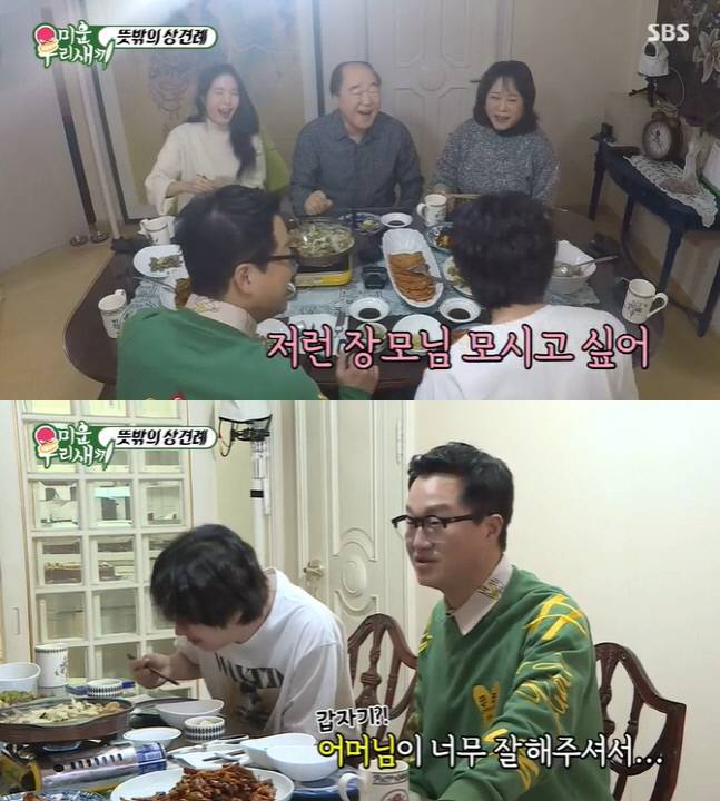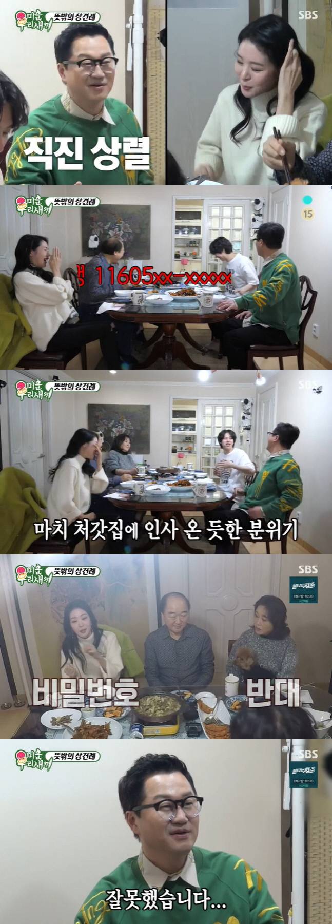 지상렬은 장광과 전성애의 마음에 들기 위해 노력했다. 급기야 집 비밀번호를 부모님께 공유하겠다고 말한 것. 이에 전성애는 “효자를 아내가 좋아할까?”라고 딴지 걸었다. 그러자 지상렬은 “잘못했습니다”라고 너스레를 떨었다.