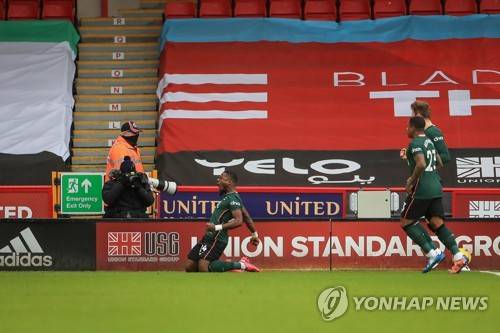 epa08943647 Serge Aurier (L) of Tottenham celebrates after scoring a goal during the English Premier League soccer match between Sheffield United and Tottenham Hotspur in Sheffield, Britain, 17 January 2021. EPA/Mike Egerton / POOL EDITORIAL USE ONLY. No use with unauthorized audio, video, data, fixture lists, club/league logos or 'live' services. Online in-match use limited to 120 images, no video emulation. No use in betting, games or single club/league/player publications.