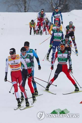 epa08943662 Athletes in action during the Individual Gundersen 10 km competition at the FIS Nordic Combined World Cup in Val di Fiemme, Italy, 17 January 2021. EPA/ANDREA SOLERO