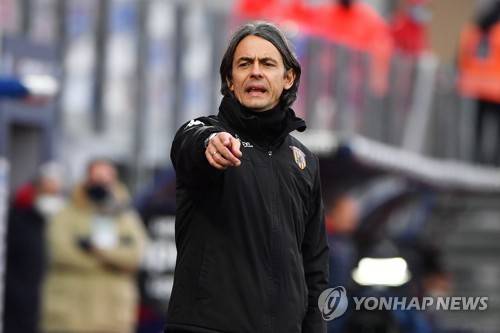 epa08943706 Benevento's head coach Filippo Inzaghi reacts during the Italian Serie A soccer match between FC Crotone and Benevento Calcio at Ezio Scida stadium in Crotone, Italy, 17 January 2021. EPA/CARMELO IMBESI