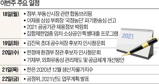 18일에는 집합제한업종 임차 소상공인을 대상으로 1000만원까지 대출해주는 ‘특별지원 프로그램’이 시작된다. 11일부터 지급된 3차 재난지원금 중 200만원을 받을 수 있는 집합제한업종 소상공인(개인사업자)이 지원 대상이다. 이날부터 정부가 여는 ‘2021년 공공기관 채용정보 박람회’는 취업준비생 등이 관심을 가질 만하다. 정부는 매년 이 행사에서 그해 공공기관 채용 규모를 공개해 왔기 때문이다. 앞서 정부는 올해 공공기관 채용을 작년(2만5700명)보다 늘리고 전체의 45% 이상은 상반기에 뽑겠다는 계획을 발표했다.