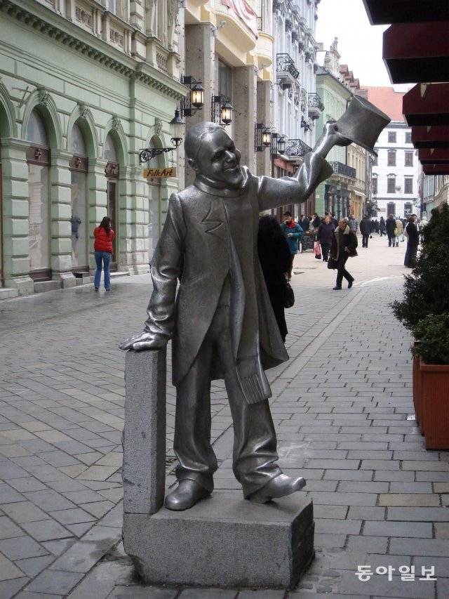 슬로바키아의 수도 브라티슬라바에는 작은 동상들이 구시가지 곳곳에 흩어져 있다. 사람들은 그 동상과 함께 사진을 찍기 위해 구석구석을 헤매고 다니기도 한다. 한 동상은 익살스럽게 중절모를 벗고 인사하는 모습이다. 브라티슬라바에서 살았던 실존 인물이 모델이다. 그는 한 여자를 짝사랑했지만 거절당하자 다른 여자들에게 꽃을 건넸다고 한다. 지금은 세계 각국의 남녀노소에게 인사를 건네고 있다.