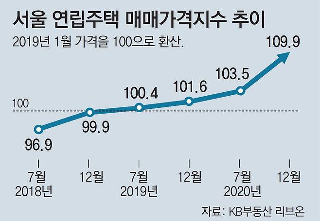 이남수 신한은행 장한평역금융센터 지점장은 “임대차법 시행에 따른 실수요와 재개발 기대감이 엮이면서 서울 주요 입지의 빌라 가격이 상승하고 있다”며 “아파트보다 가격 부담이 덜하고, 규제 역시 상대적으로 적다는 장점도 수요가 몰리는 이유 중 하나”라고 분석했다.