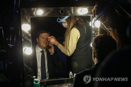 epa08944830 Former Italian Prime Minister and leader of Italian party Italia Viva, Matteo Renzi, is prepared backstage prior to the La7 Italian TV program 'Non e l'arena' hosted by Italian journalist Massimo Giletti in Rome, Italy, 17 January 2021. EPA/FABIO FRUSTACI