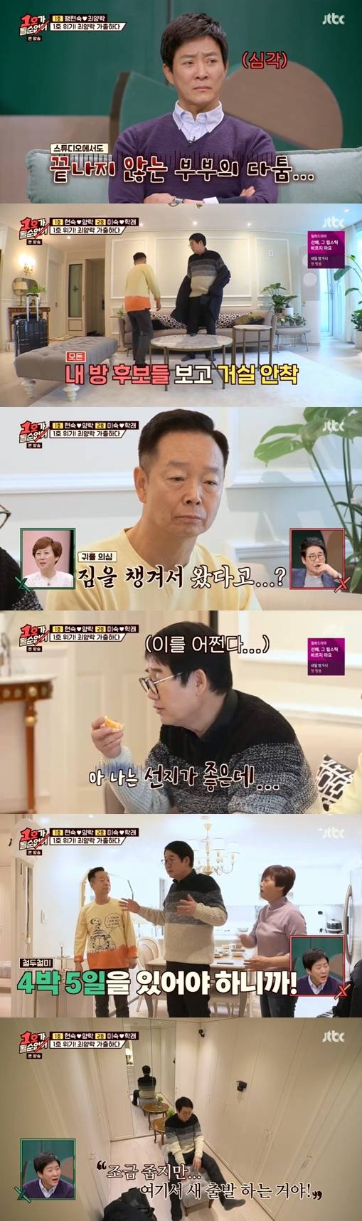 임미숙, 김학래의 집에서 옷방 더부살이를 하게 된 최양락. 최수종은 "너 나중에 큰일 난다"며 입을 다물지 못했다. 또 최수종은 "가끔 문자를 주고 받는다. 그러다 (연락처에서) 없어진다"고 최양락에게 경고했다.