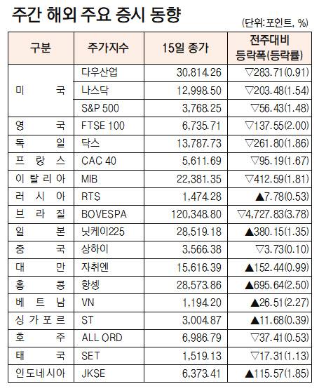 - [표]해외 주요 증시 동향(1월 15일)