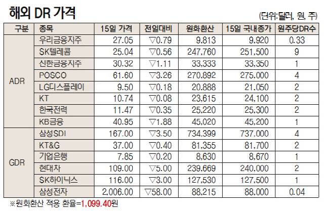 [표]해외 DR 가격(1월 15일)