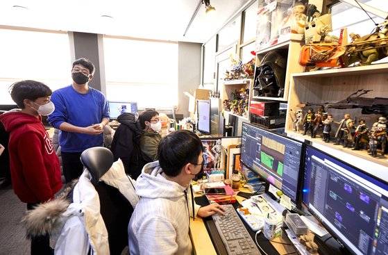 소중 학생기자단은 이대희 감독을 만나기 위해 ‘뽀로로’, ‘코코몽’ 그리고 ‘스트레스 제로’를 제작한 302플래닛을 방문했죠. “여기가 제 작업실이에요.” 이 감독이 반갑게 맞아줬습니다. ‘스트레스 제로’ 제작에는 30~35명 정도의 제작진이 투입되었는데요. 제작비와 영화의 규모에 따라 만드는 인원이 결정된다고 했죠. “외국 같은 경우에는 200~300명의 인원이 만들기도 하고, 제 전작인 ‘파닥파닥’은 15명 정도 데리고 만들었던 거 같아요.” 한 작품을 만드는 데 여러 사람의 노력이 들어간다는 걸 알 수 있었죠. 이 감독은 많은 인원이 어떤 일을 하는지 간략하게 소개해줬습니다.