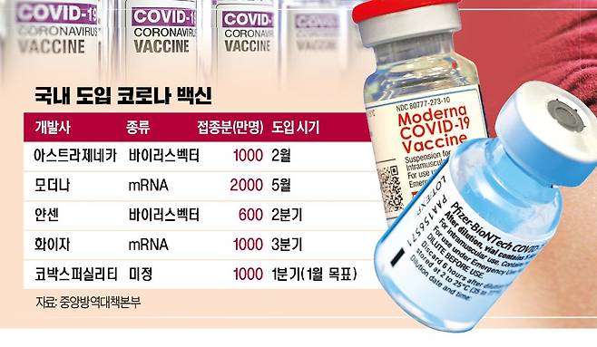 한국은 다음달 후반께 아스트라제네카를 시작으로 백신 접종에 나선다. 오는 5월에는 모더나 백신이 들어오는 등 지난 14일 현재 4600만 명분의 백신 도입이 확정됐다. 얀센 백신을 제외하면 모두 두 번 맞아야 한다.