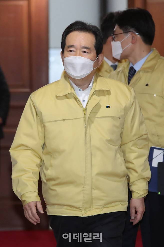 [이데일리 이영훈 기자] 정세균 국무총리가 18일 오전 서울 종로구 정부서울청사에서 열린 코로나19 대응 중앙재난안전대책본부 회의에 참석하고 있다.