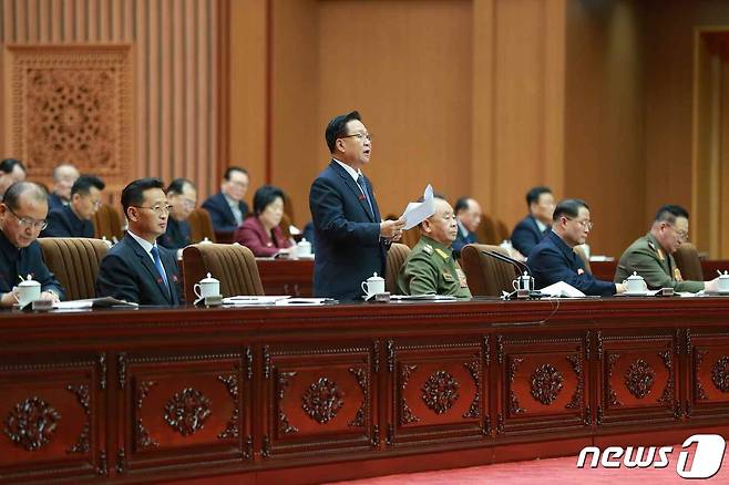 (평양 노동신문=뉴스1) = 북한 노동당 기관지 노동신문은 18일 최고인민회의 개최 소식을 보도했다. 신문은 "최고인민회의 제14기 제4차 회의가 17일 만수대의사당에서 진행되었다"면서 최룡해 최고인민회의 상임위원장, 리병철 당 중앙군사위원회 부위원장, 김덕훈 내각총리 등이 참석했다고 전했다. 이번 회의는 제8차 당 대회 후속 조치 마련 차원에서 열렸으며 하루 만에 폐막했다.