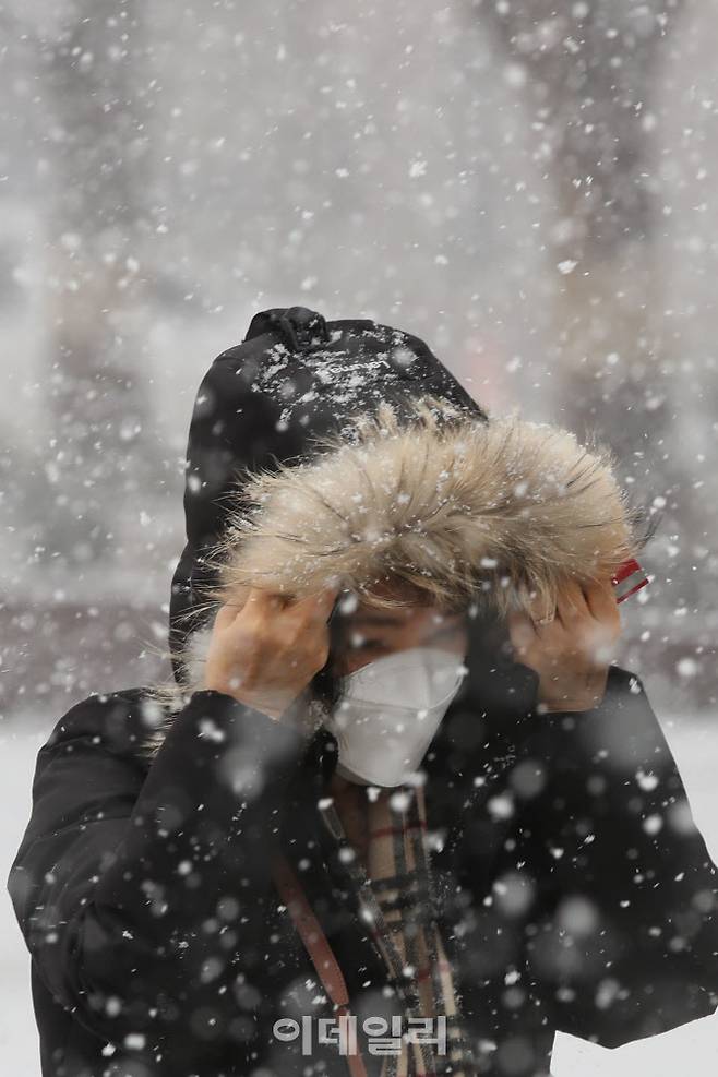 [이데일리 이영훈 기자] 수도권에 시간당 2cm 내외 다소 강한 눈이 예보된 18일 서울 종로구 광화문 일대에 폭설이 내리고 있다.