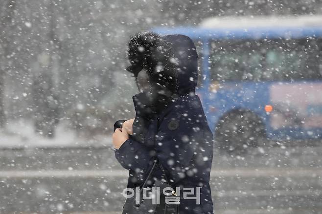 [이데일리 이영훈 기자] 수도권에 시간당 2cm 내외 다소 강한 눈이 예보된 18일 서울 종로구 광화문 일대에 폭설이 내리고 있다.