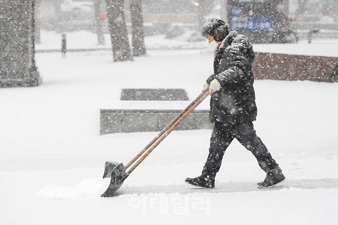 [포토]폭설 뚫고 눈 치우는 한 관계자