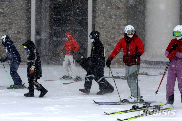 [평창=뉴시스] 김경목 기자 = 스키어와 스노보더들이 18일 오후 대설주의보가 발효 중인 강원도 평창 발왕산용평리조트 드래곤캐슬에서 겨울스포츠를 즐기고 있다. 2021.01.18. photo31@newsis.com