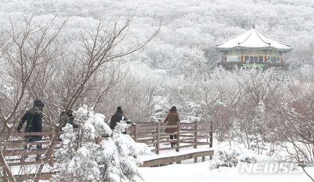 [제주=뉴시스]우장호 기자 = 대한(大寒) 절기를 이틀 앞둔 18일 오후 제주 한라산 1100고지 습지에 눈꽃이 활짝 펴 관광객들의 눈길을 사로잡고 있다. 2021.01.18. woo1223@newsis.com