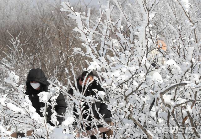 [제주=뉴시스]우장호 기자 = 대한(大寒) 절기를 이틀 앞둔 18일 오후 제주 한라산 1100고지 습지에 눈꽃의 일종인 상고대가 펴 아름답다. 2021.01.18. woo1223@newsis.com