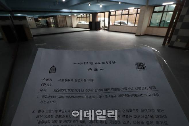 [포토]집합금지 조치에 발 묶인 에어로빅 체육관