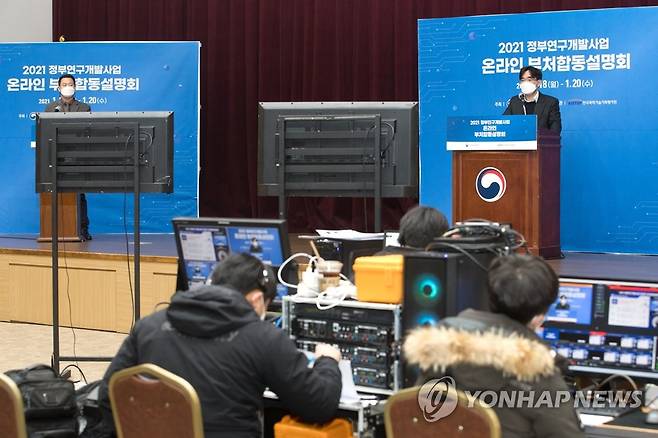 (서울=연합뉴스) 오대현 과학기술정보통신부 연구예산총괄과장이 18일 오후 세종특별자치시 정부세종컨벤션센터에서 열린 '2021 정부연구개발사업 온라인 부처합동설명회'에서'2021년 정부연구개발 예산 주요특징을 설명하고 있다. 2021.1.18