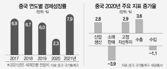이와 함께 수출도 3.6% 늘면서 경제성장에 큰 도움이 됐다. 중국은 코로나19 팬데믹(세계적 대유행)으로 글로벌 공급망이 거의 파괴된 상태에서 세계에 중국산 제품을 집중 공급해 코로나19 책임론을 무색하게 하며 ‘코로나 특수’를 누렸다.