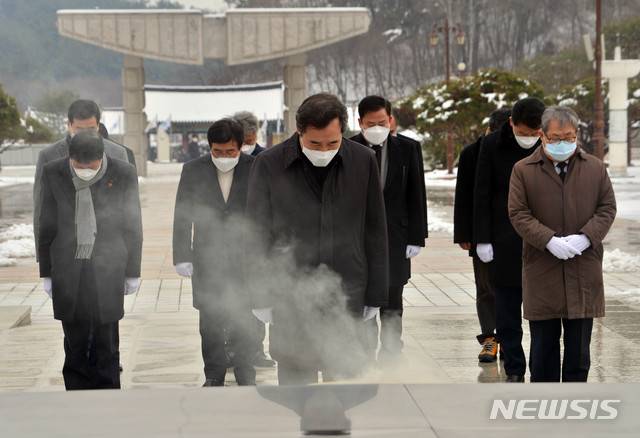 [광주=뉴시스] 변재훈 기자 = 이낙연 더불어민주당 대표가 18일 오후 광주 북구 운정동 국립 5·18민주묘지를 찾아 오월영령을 참배하고 있다. 2021.01.18. wisdom21@newsis.com