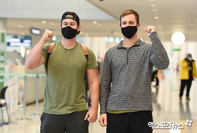 [엑스포츠뉴스 인천공항, 윤다희 기자] KIA 타이거즈의 외국인 타자 터커와 새 외국인 투수 멩덴이 18일 오후 인천국제공항을 통해 입국했다.